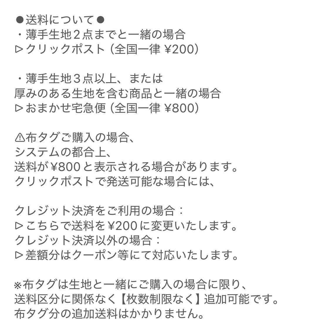 布タグの送料について、