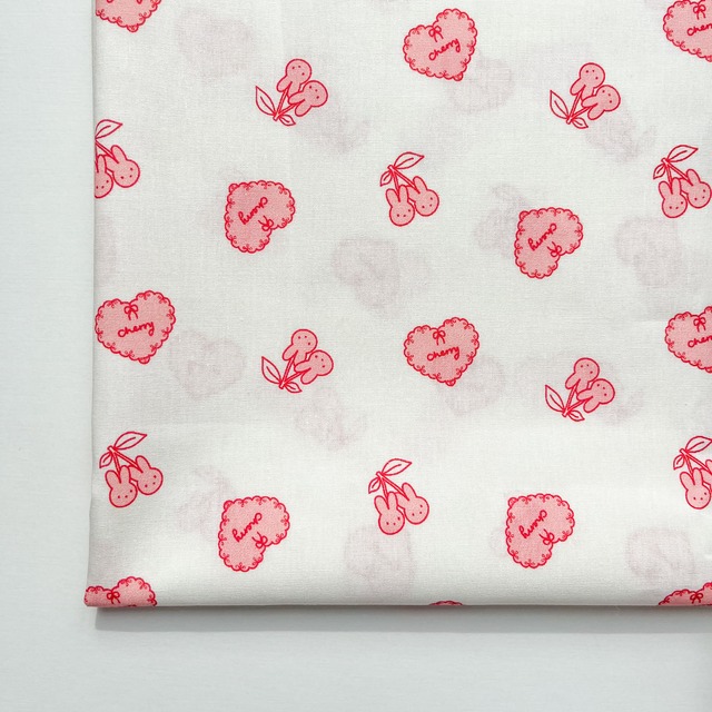 やさしいオフホワイト地に、 手描き風のうさちゃんチェリーと レースハートが散りばめられたキュートな コットンプリント生地♡♡ 赤のラインで描かれたモチーフがガーリーで、 どこかレトロな雰囲気も感じられます☺︎ 薄手のコットン素材で、巾着やポーチなどの 小物作りにぴったり!! インテリアや子ども用アイテムにもおすすめです♪ ◌伸縮性 : なし ◌厚み : 薄手〜普通 ◌透け感 : ややあり ☑︎ 数量1=0.5y=45cm ※ご注文数繋げてカットいたします✂︎ ☑︎生地幅:約143cm ☑︎生地素材:綿 100% ☑︎色柄:色(画像参照) _♡one color ☑︎商用利用可能 ⚫︎ クリックポスト対象生地⚫︎ 薄手生地のため1 yard〔数量2〕まで クリックポスト(¥200)にてご対応可能です! ※他対象生地と0.5yardずつも可能。 ご希望の場合は送料選択の際、クリックポストをお選びください。 ----------------------------------- ⚠︎注意事項⚠︎ ・こちらの生地は素材の特性上、折りジワがつきやすく、仕入れ時点で強めのシワがある部分もございます。アイロンをかけていただくことで解消できますので、不良ではございません。あらかじめご了承ください。 ・撮影環境やモニターの明るさにより実際の 色味と見え方に差が生じる場合があります。 ご購入前に必ずご一読ください⇩ https://popmimi.base.shop/about