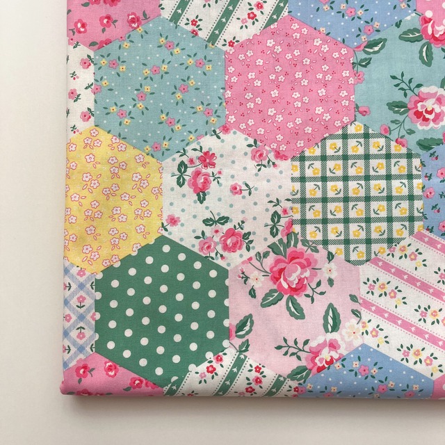 パッチワークのようなデザインが魅力のコットン生地です☺︎ 六角形モチーフの中に、レトロ感のある花柄が散りばめられた、どこか懐かしく優しい雰囲気のデザイン♡♡ 程よい厚みで縫いやすさも◎ バッグやポーチ、インテリア雑貨、子ども服など幅広くお使いいただけます♪ ◌伸縮性 : なし ◌厚み : 普通 ◌透け感 : なし ☑︎ 数量1=0.5y=45cm ※ご注文数繋げてカットいたします✂︎ ☑︎生地幅:約110cm ☑︎生地素材:綿 100% ☑︎色柄:1色(画像参照) _♡one color ☑︎商用利用可能 ⚫︎ クリックポスト対象生地⚫︎ 薄手生地のため1 yard〔数量2〕まで クリックポスト(¥200)にてご対応可能です! ※他対象生地と0.5yardずつも可能。 ご希望の場合は送料選択の際、クリックポストをお選びください。 ----------------------------------- ⚠︎注意事項⚠︎ ・撮影環境やモニターの明るさにより実際の 色味と見え方に差が生じる場合があります。 ご購入前に必ずご一読ください⇩ https://popmimi.base.shop/about