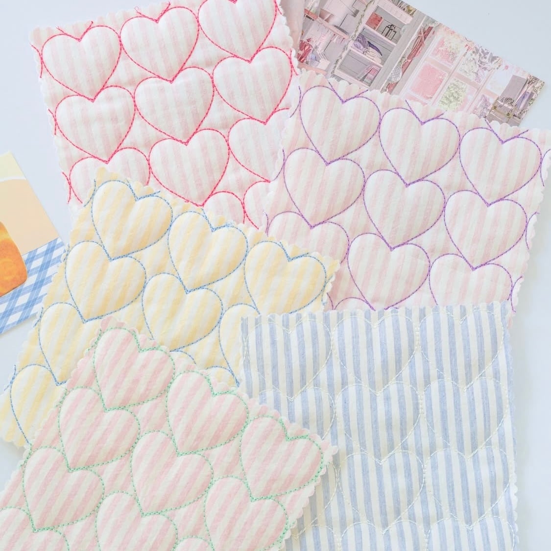 ストライプとカラフルなハート刺繍の
