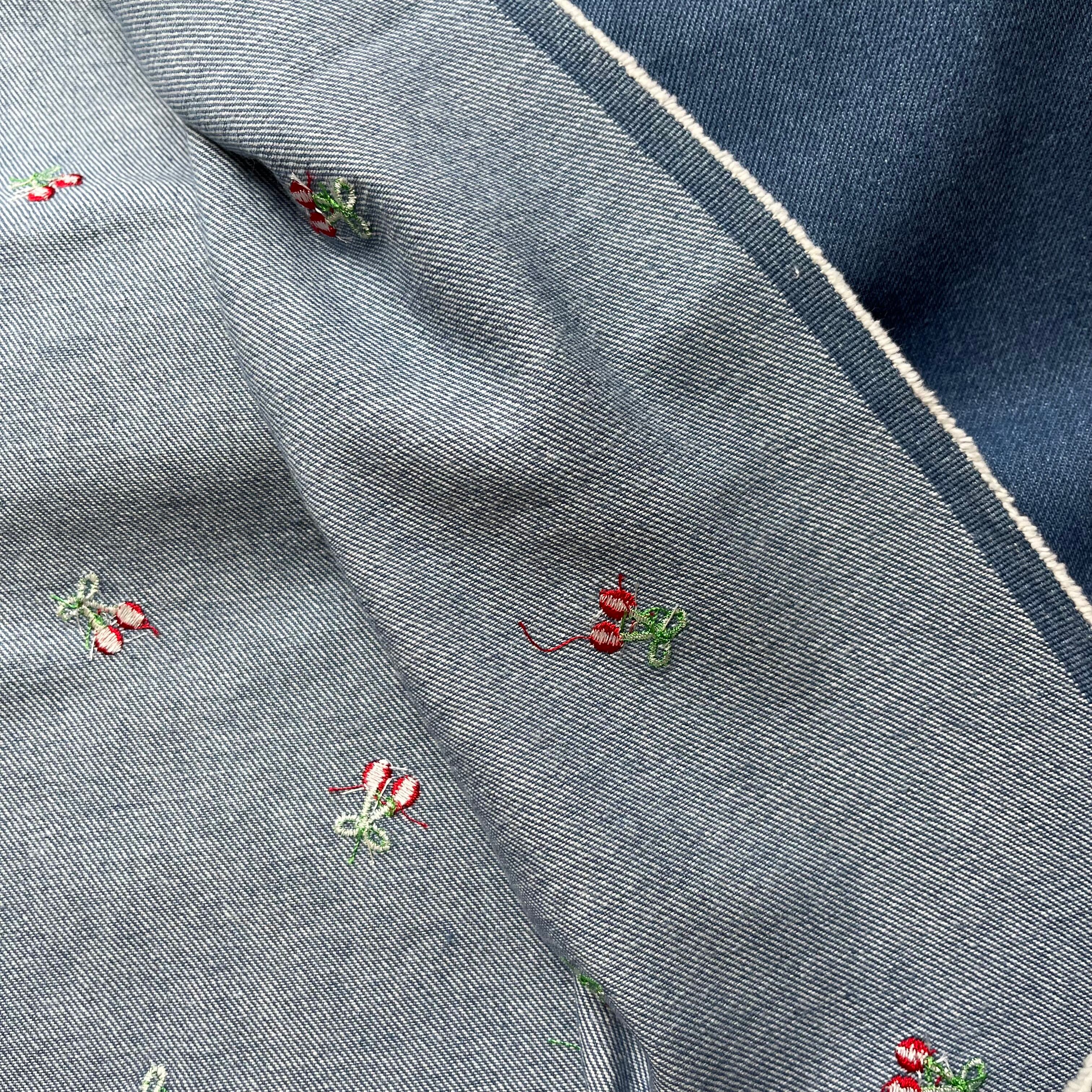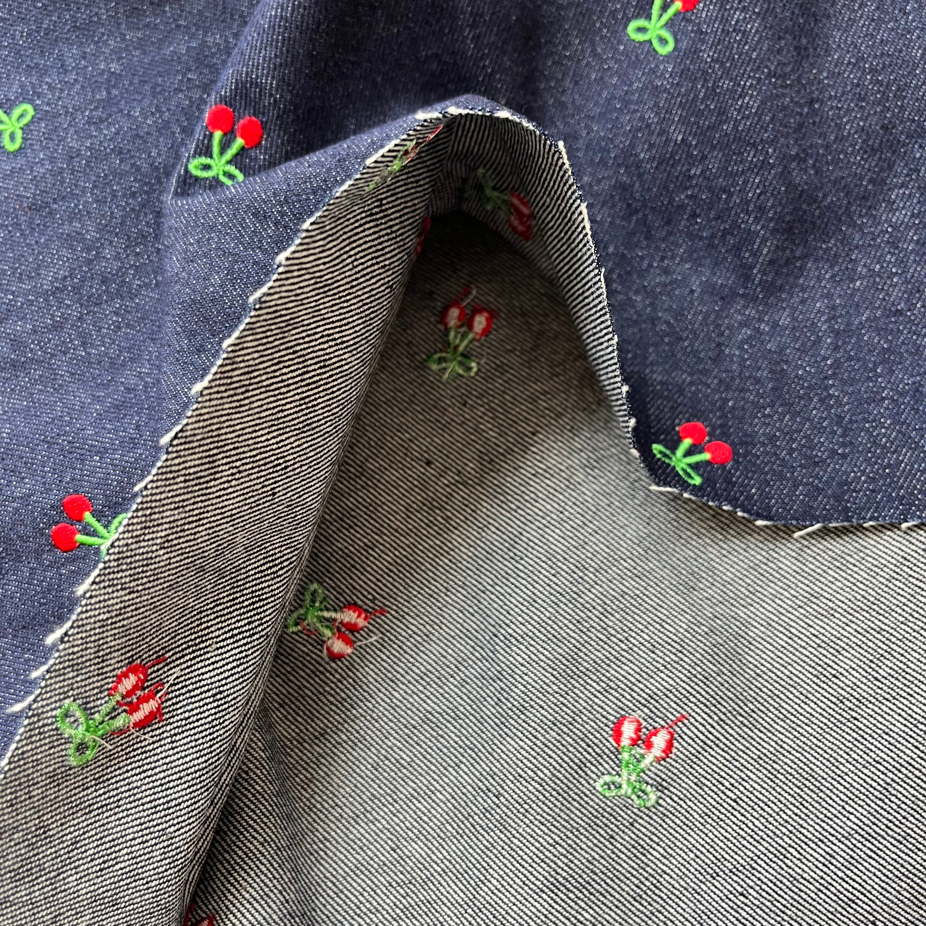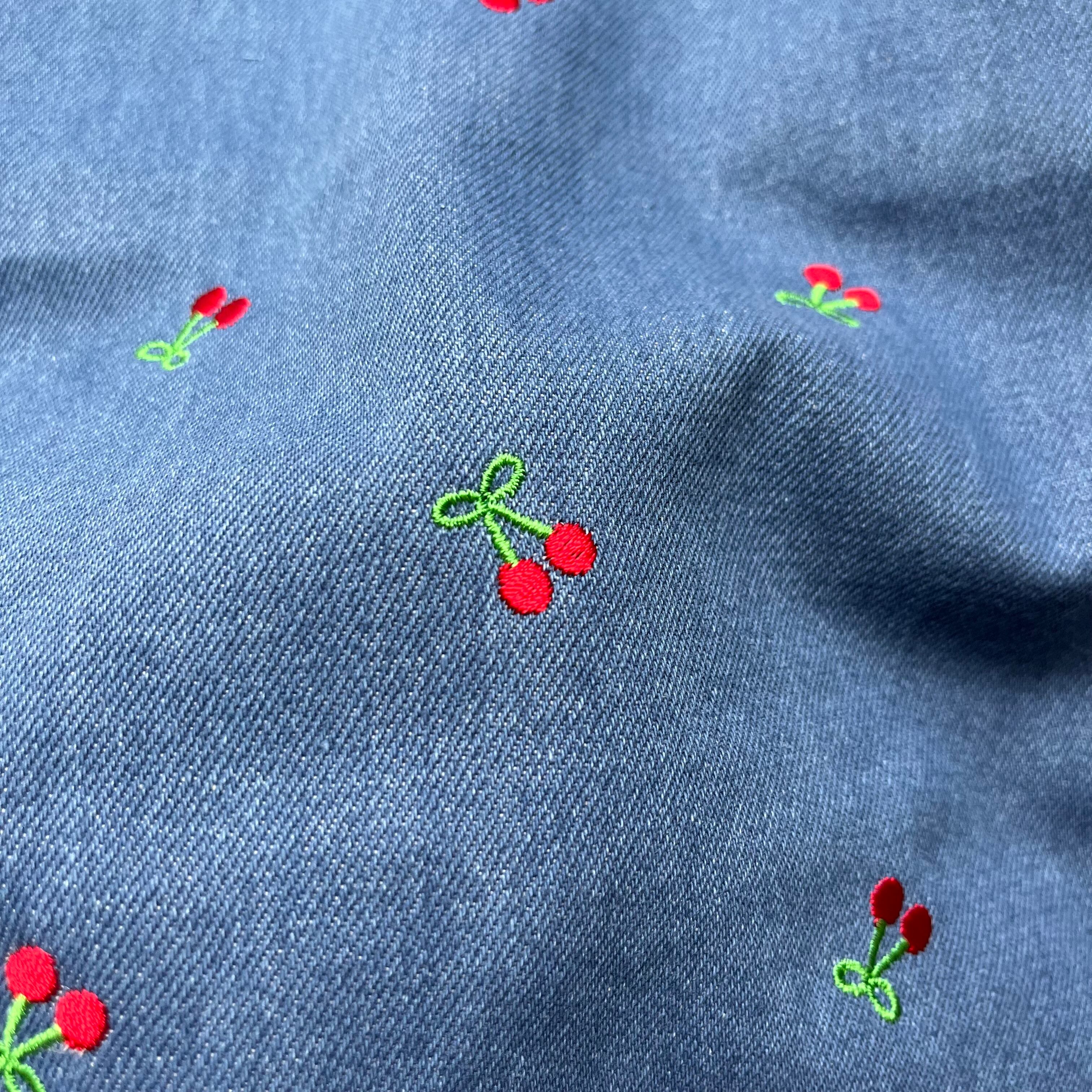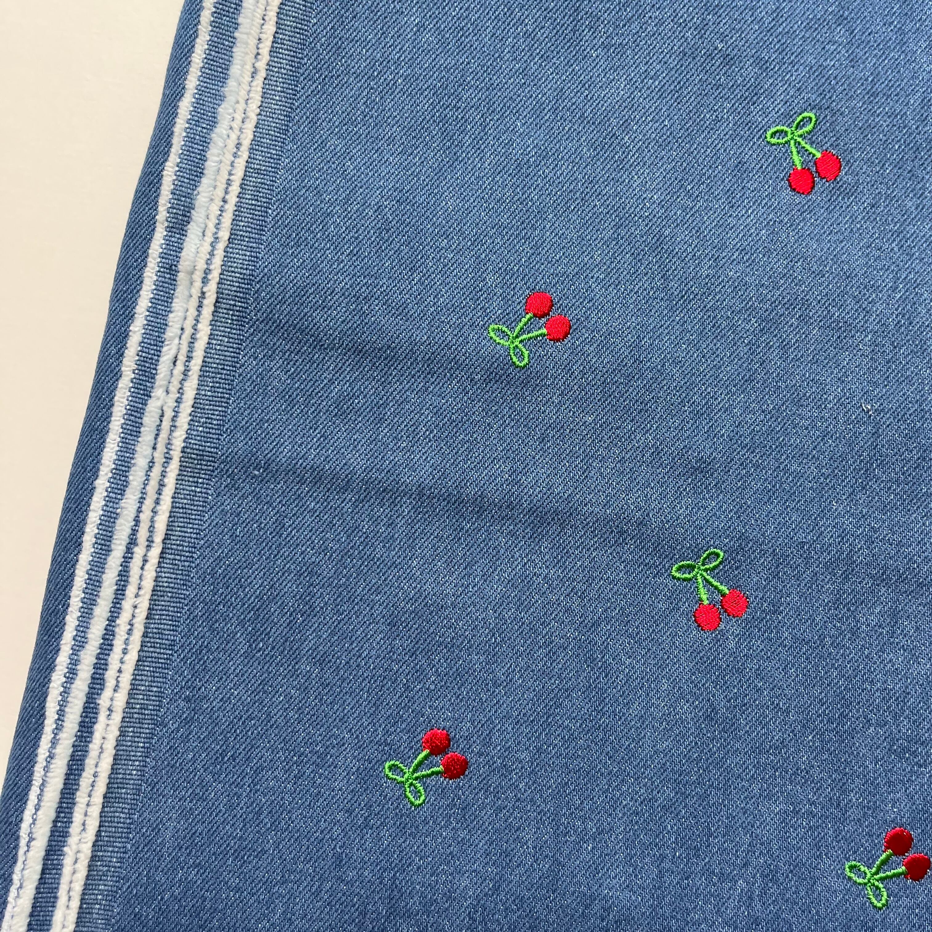【即納】チェリー刺繍デニム/コットン