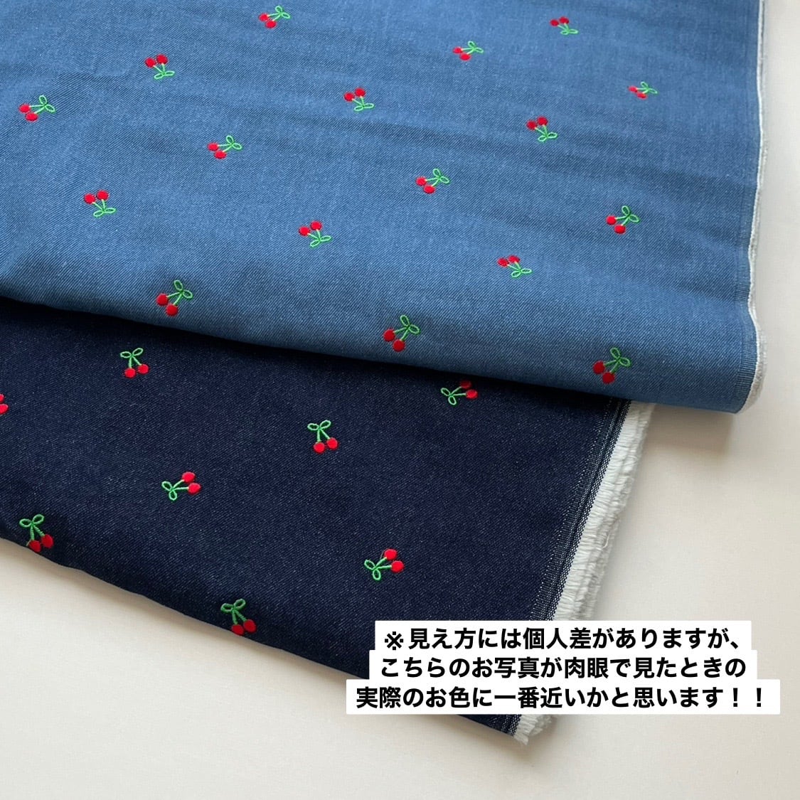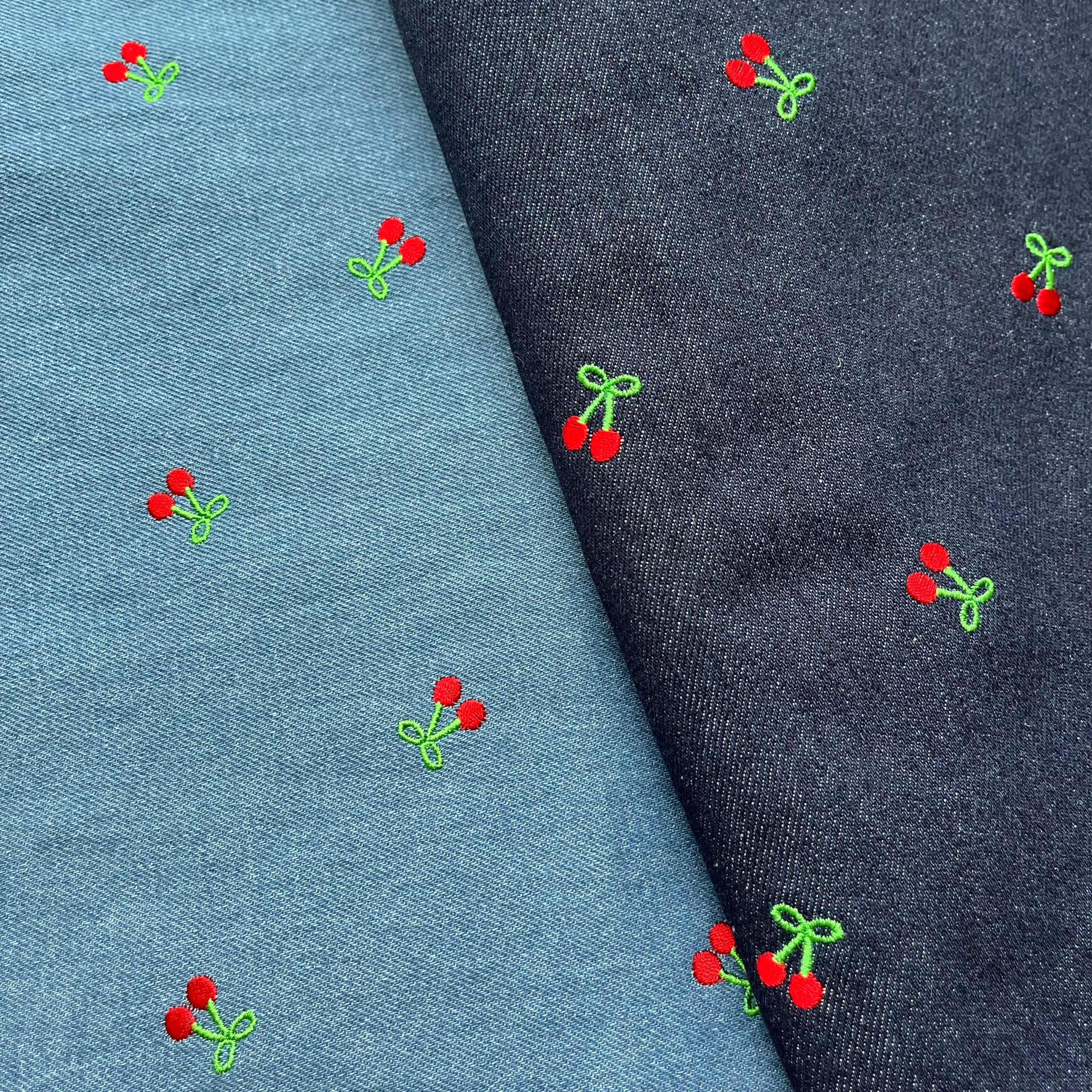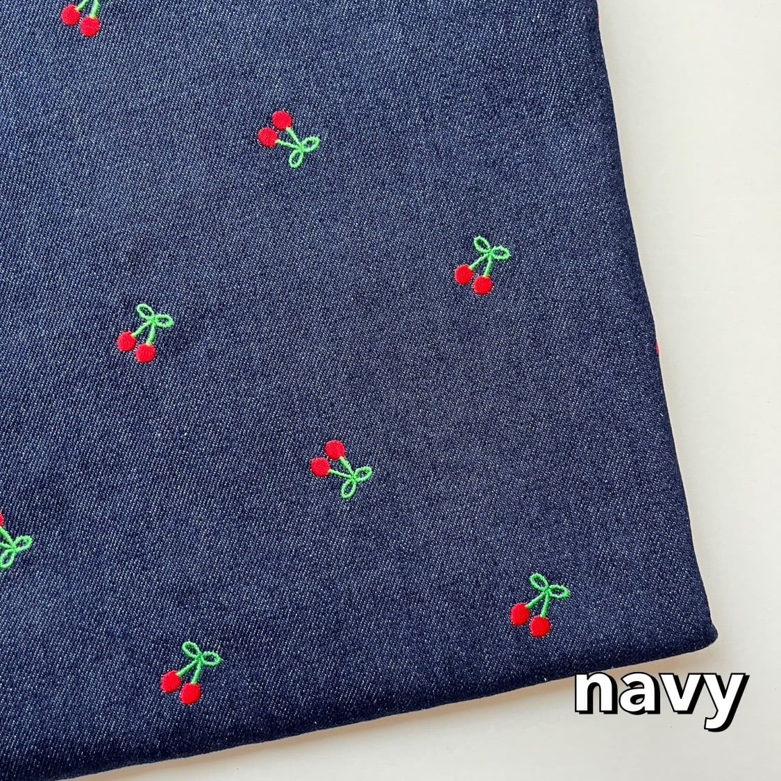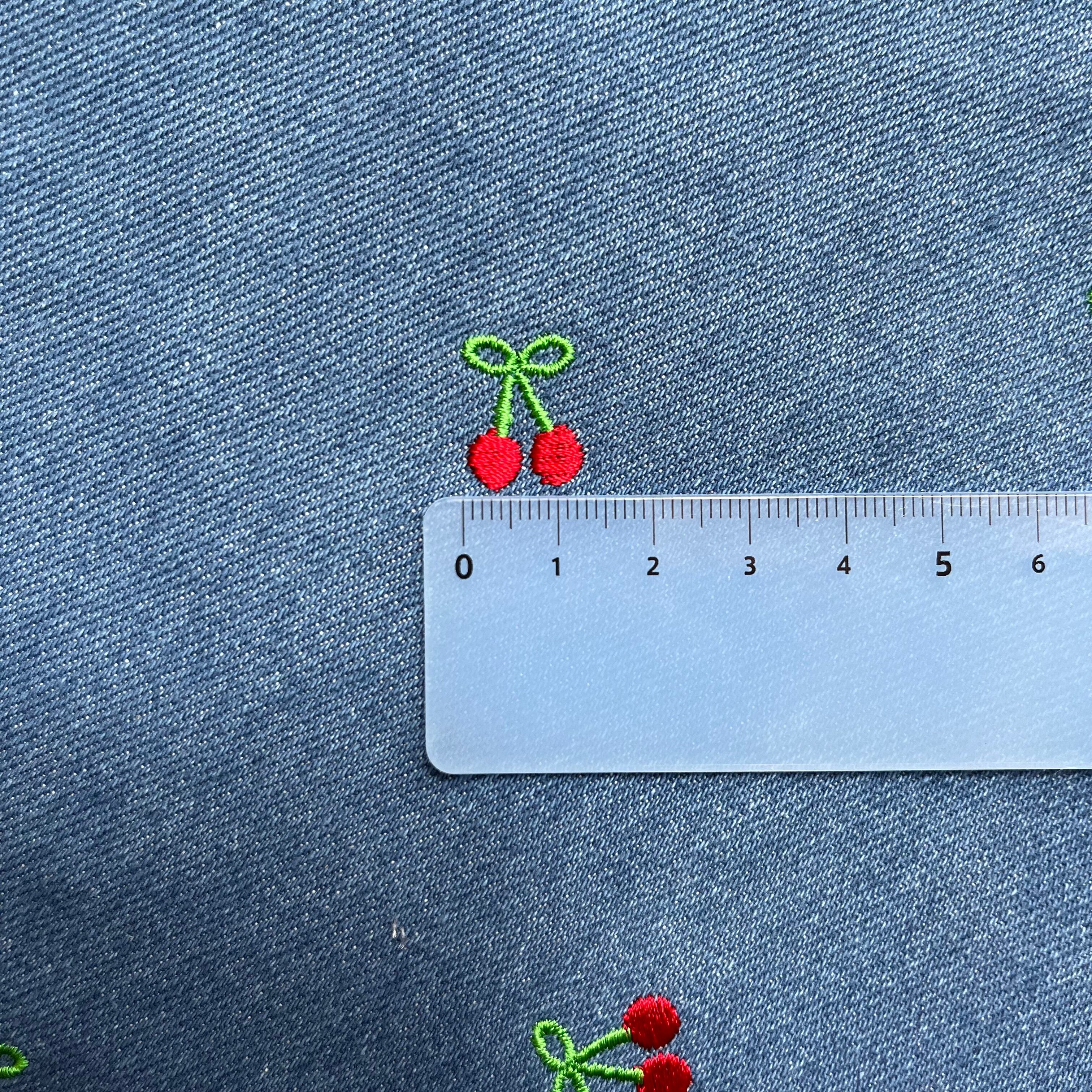 【即納】チェリー刺繍デニム/コットン