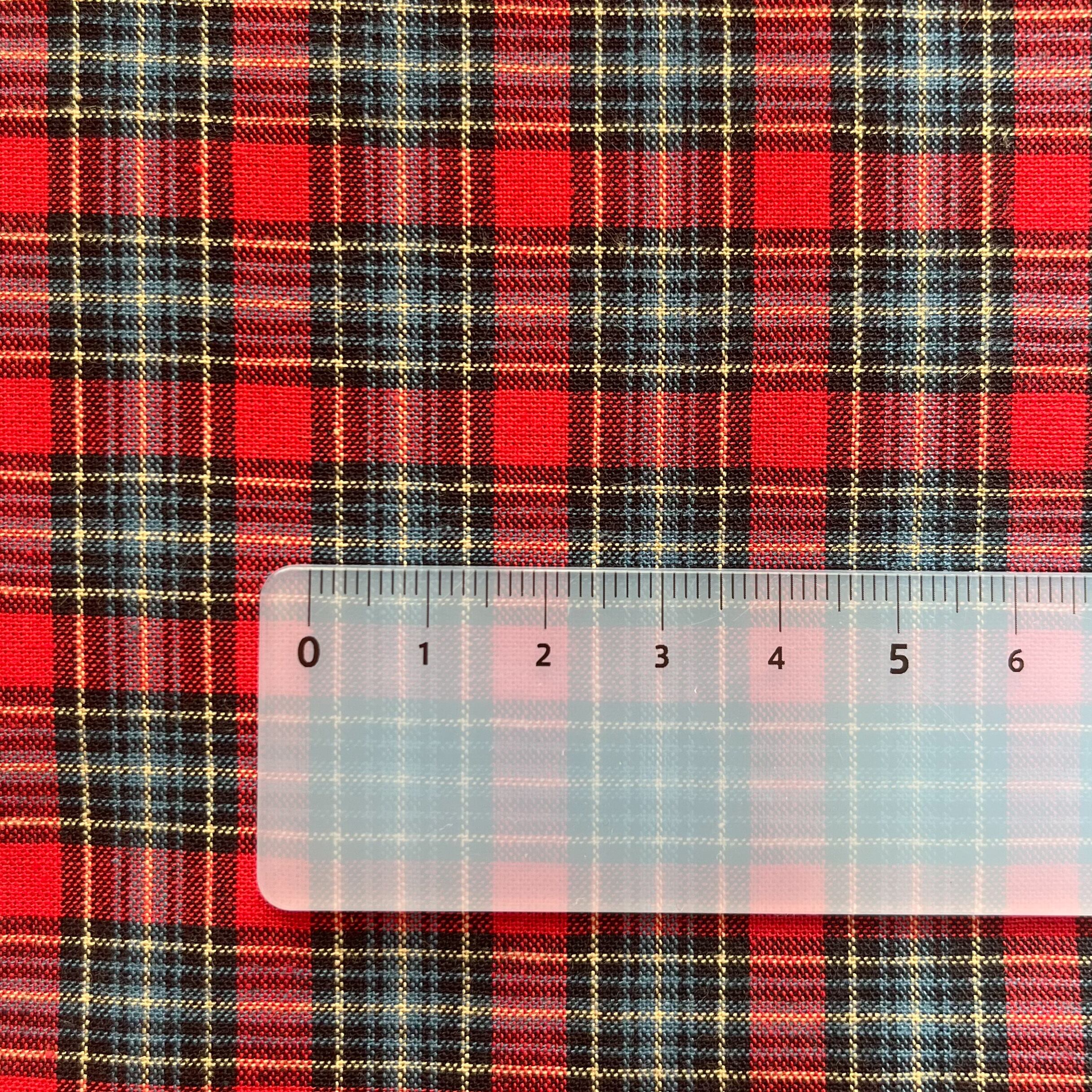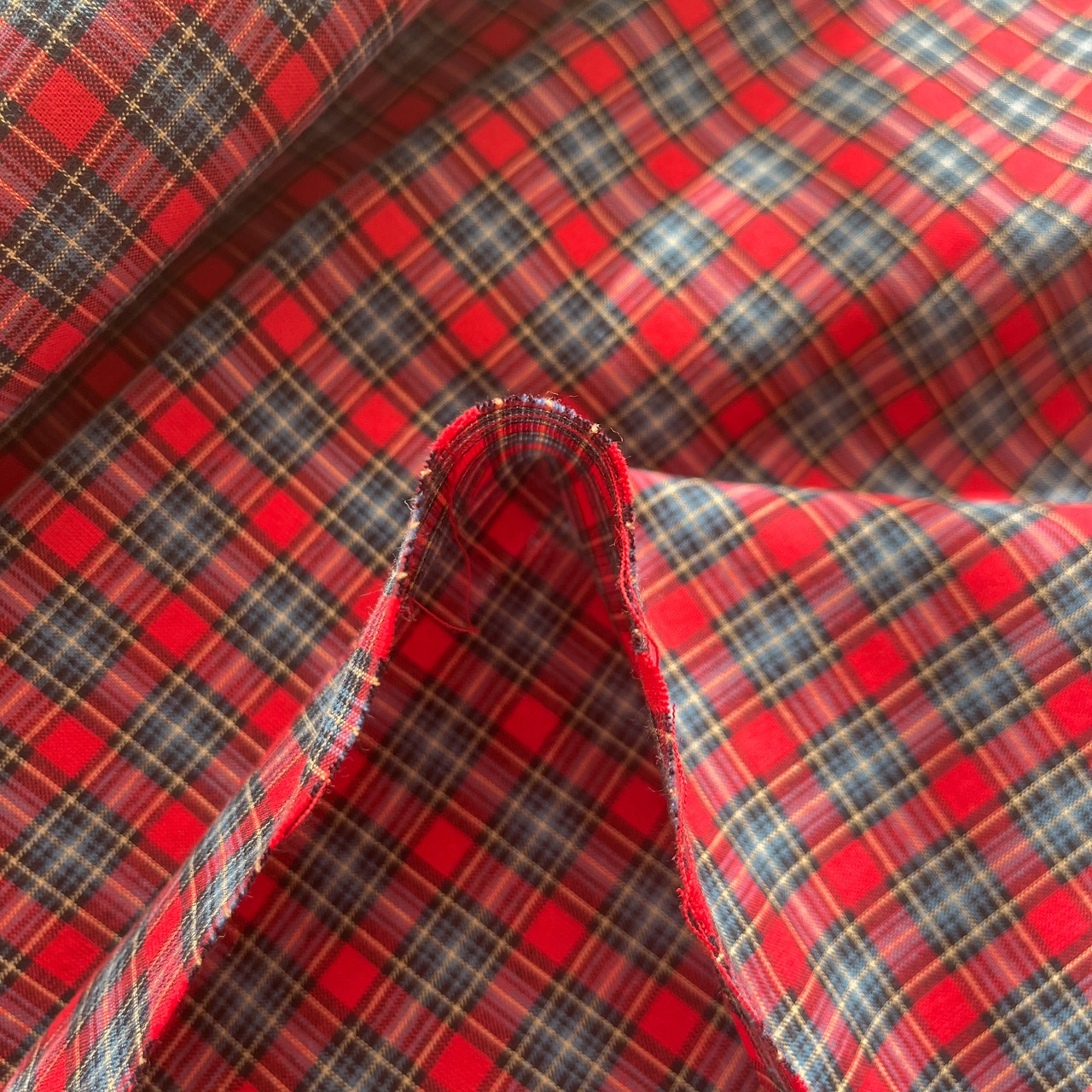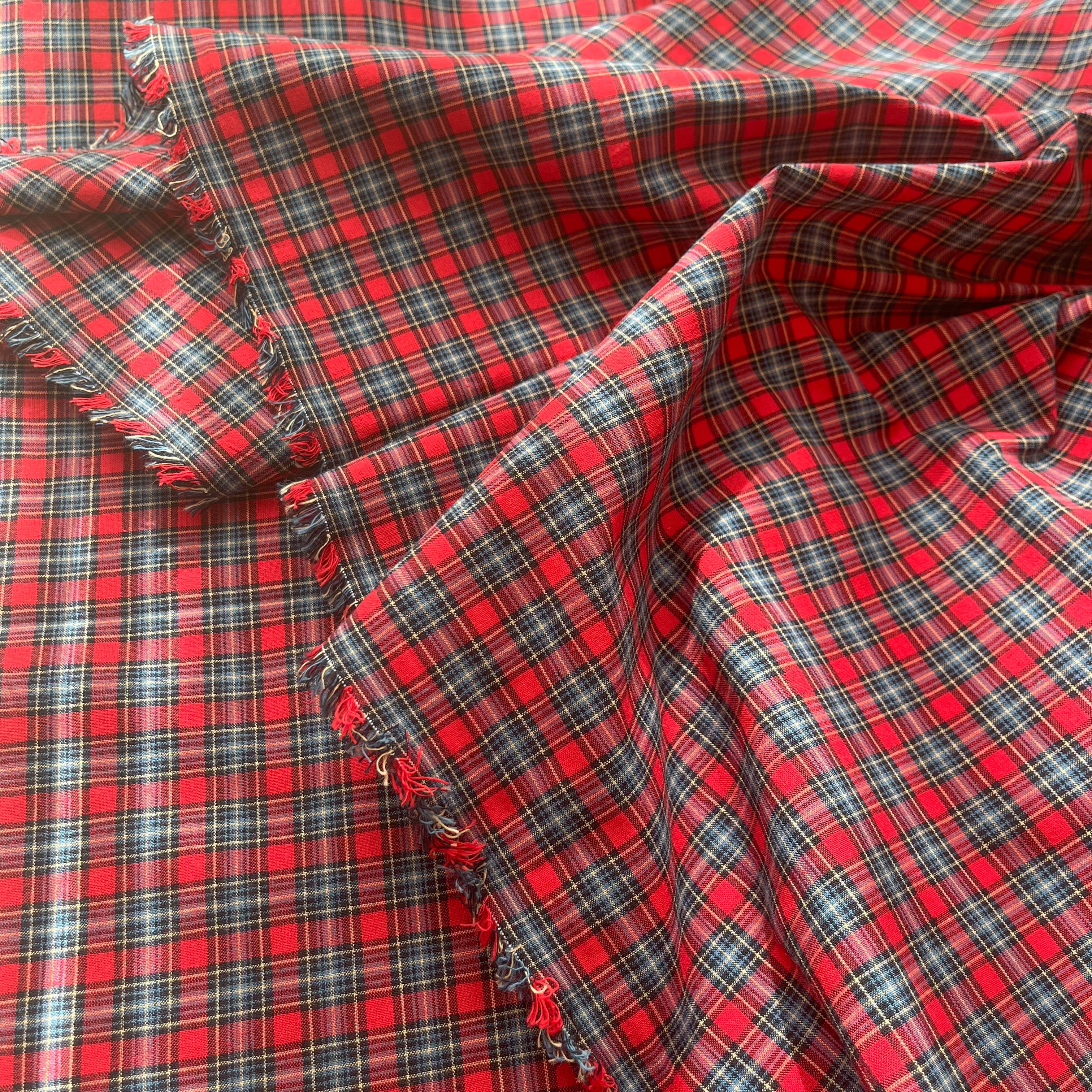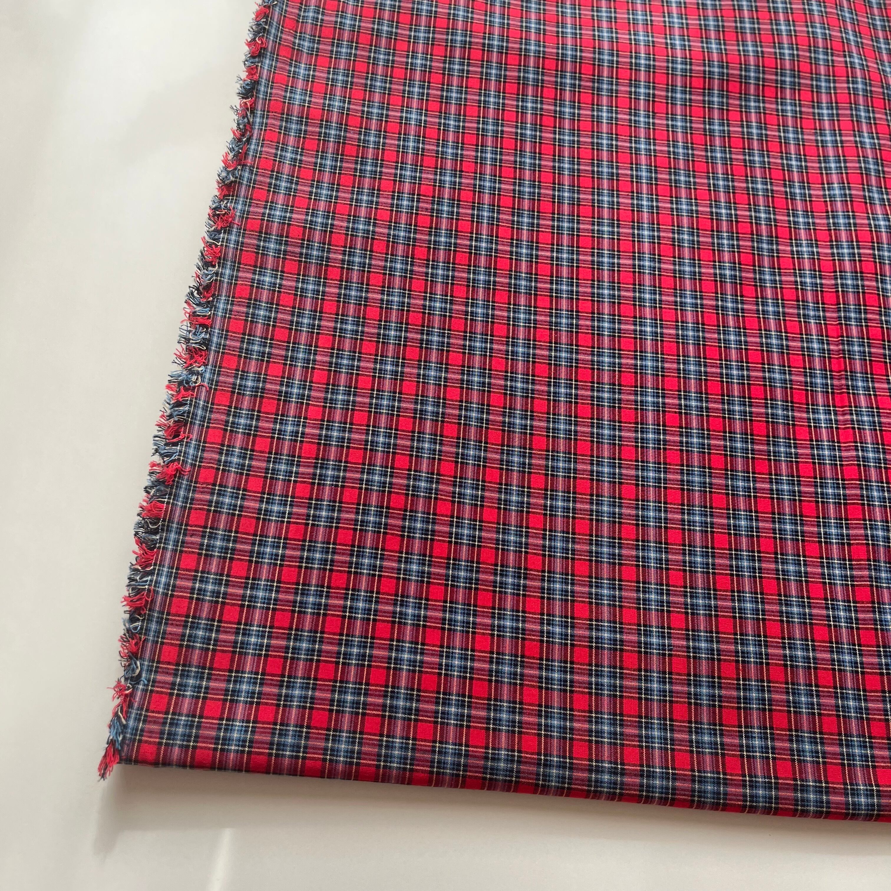 明るいレッドが印象的なタータンチェックのコットン生地♪
