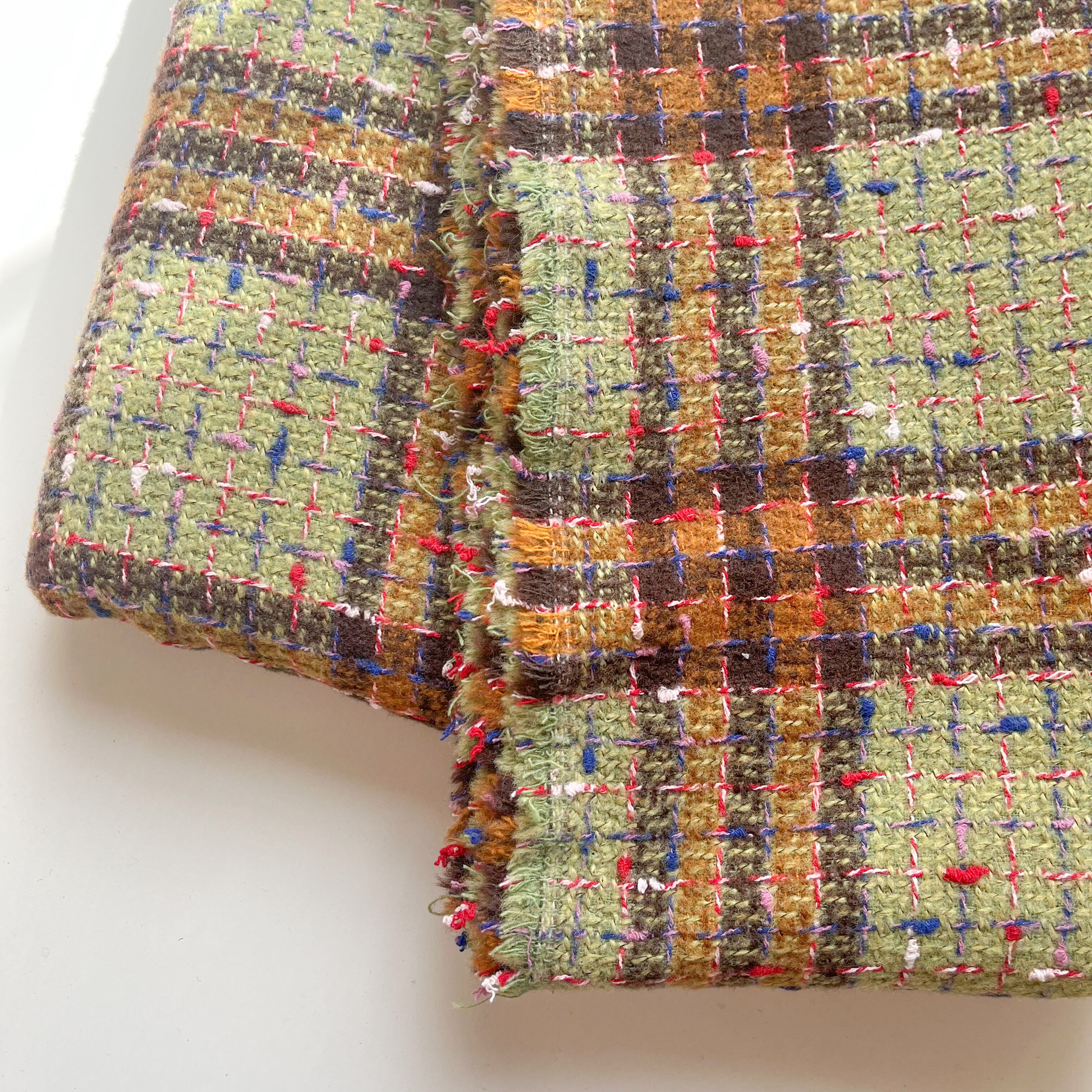 ふっくらとした大柄チェックのツイード生地♪