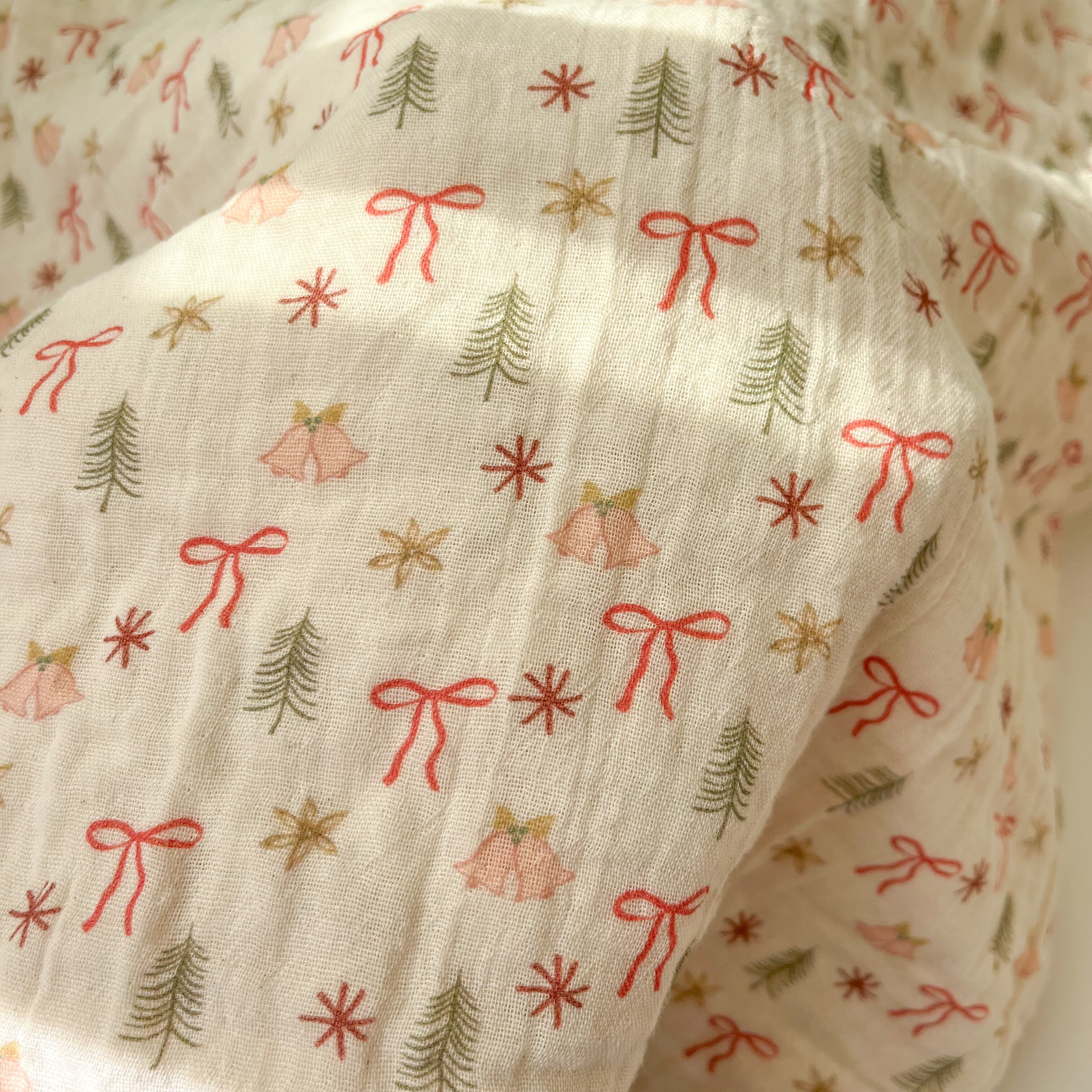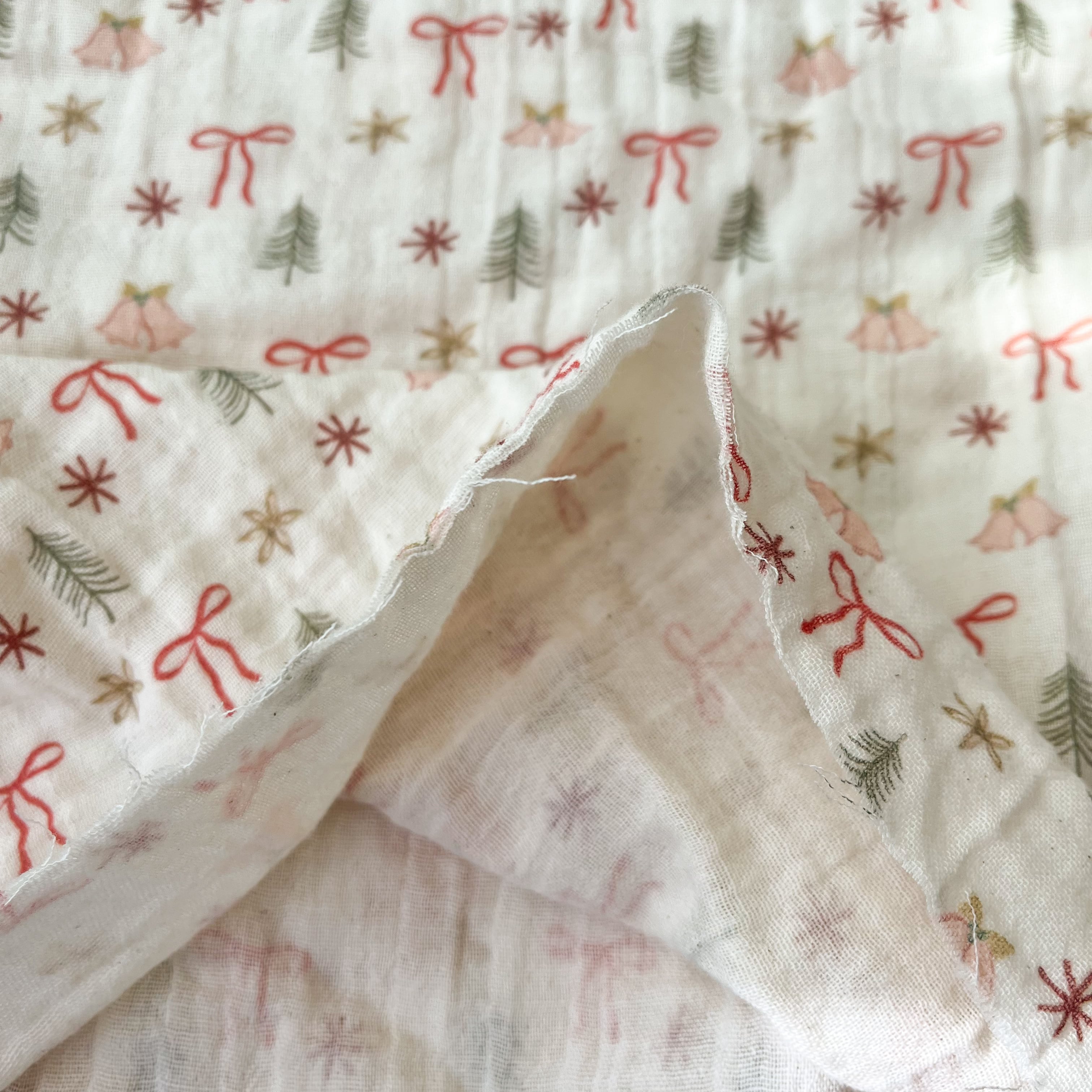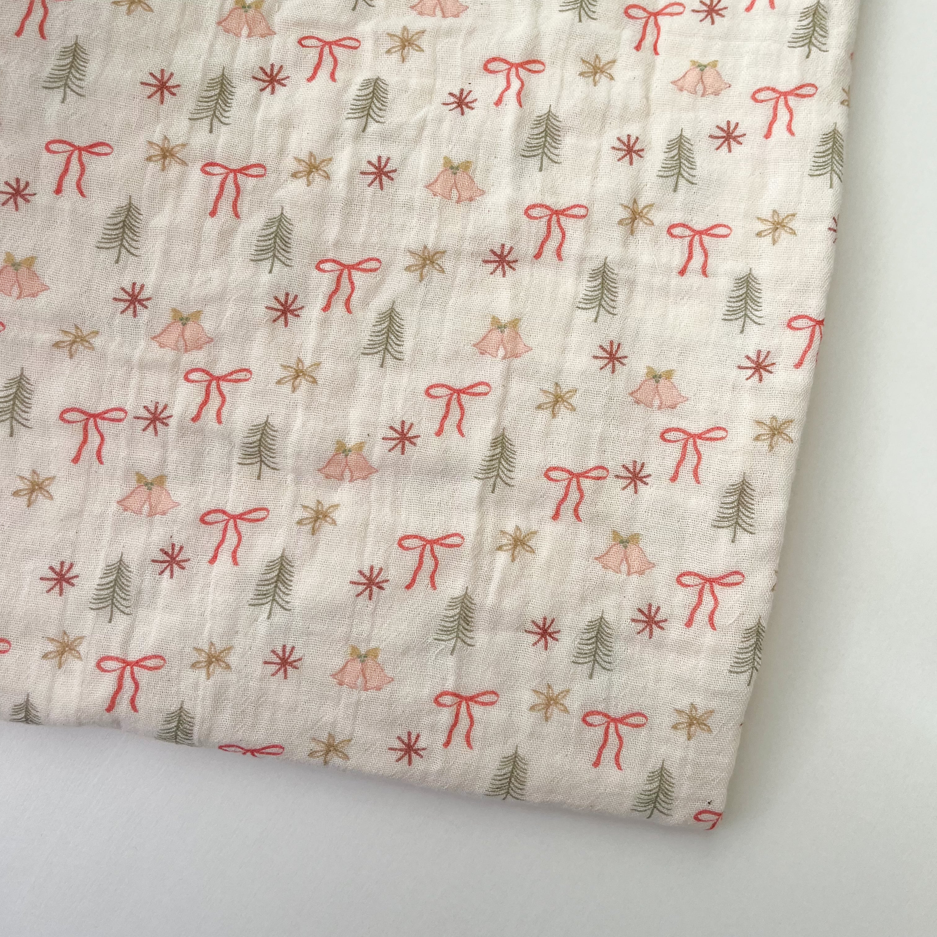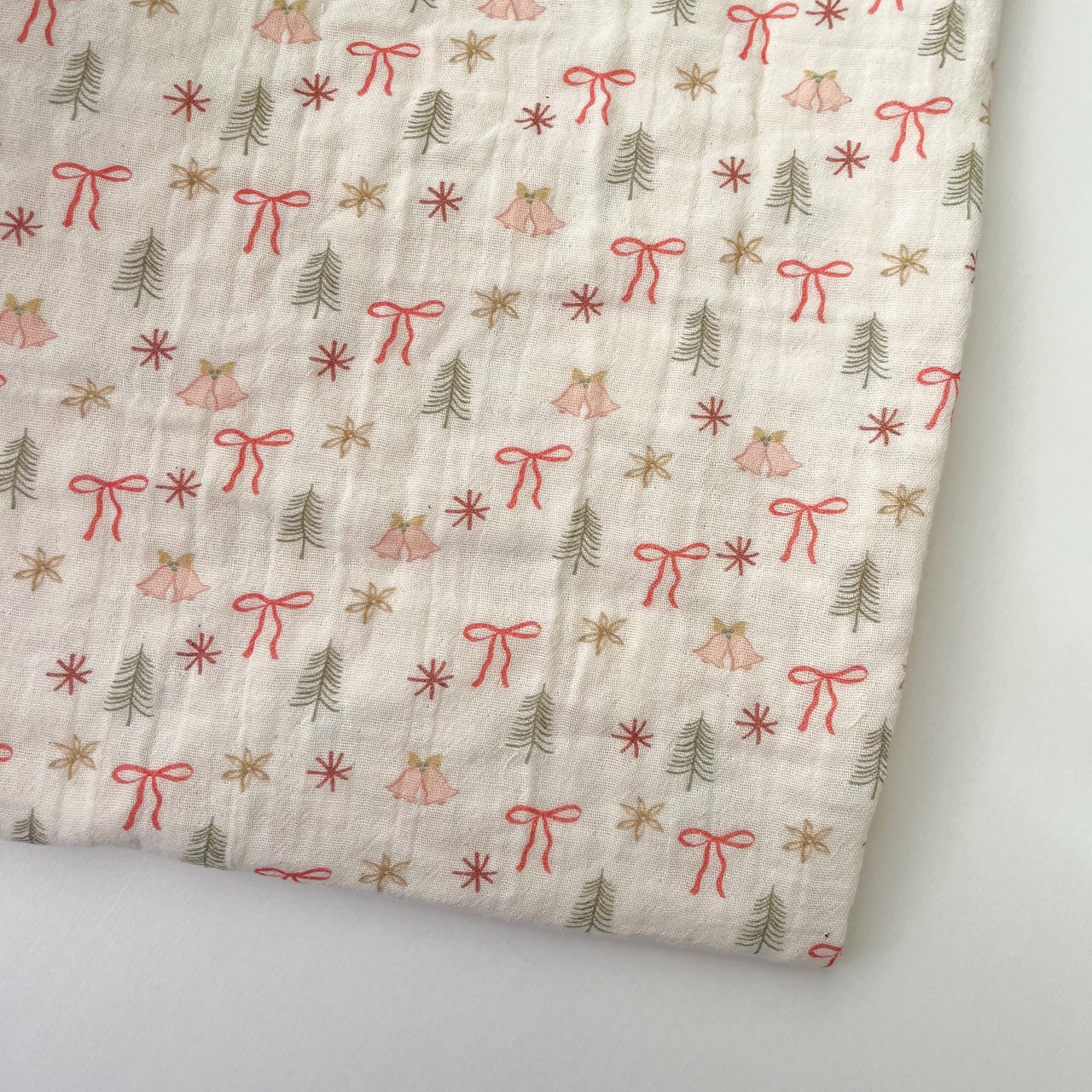 ほっこり可愛いクリスマス柄のダブルガーゼ生地♪