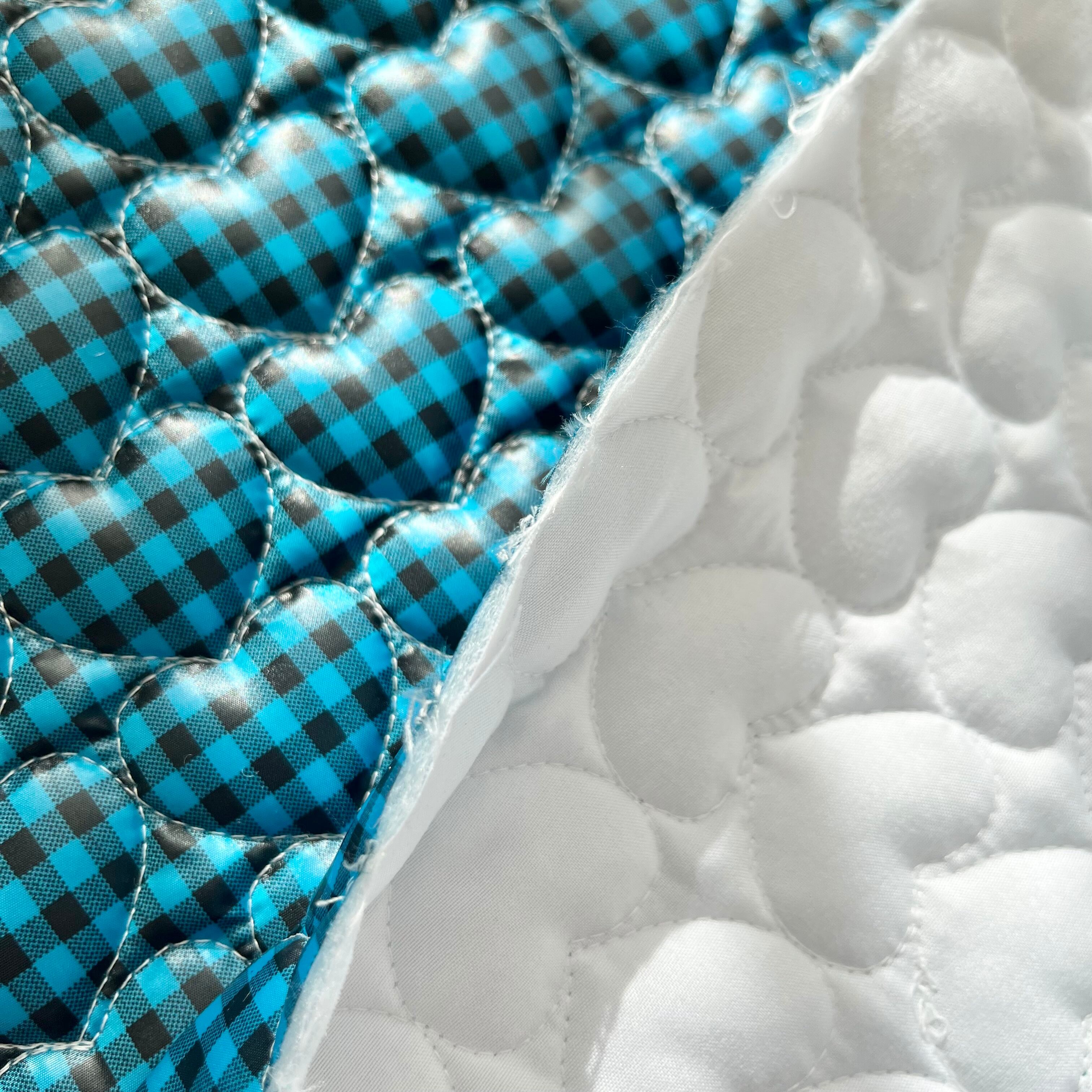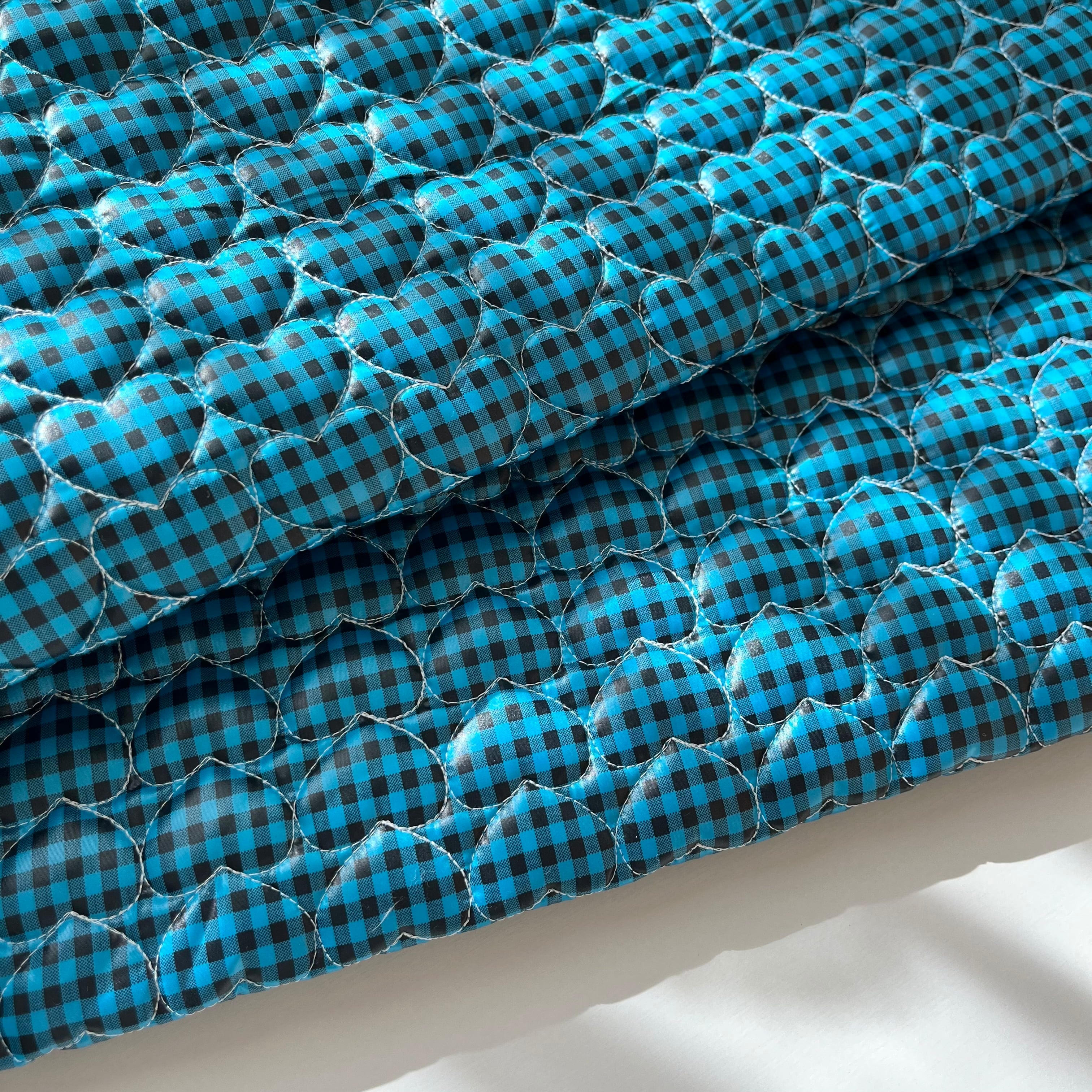 【即納】ブラックチェック♡ブルー/ハートキルティング